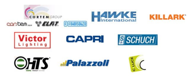 أغطية المصابيح ، كوابح ، مثبتات الجهد ، محولات الجهد ، المشغلات ، المحولات ، المحولات ، أجهزة الاستشعار.