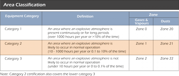 هناك ستة أنواع من دليل تصنيف المنطقة لتصنيف البيئة / المعدات المقاومة للانفجار: