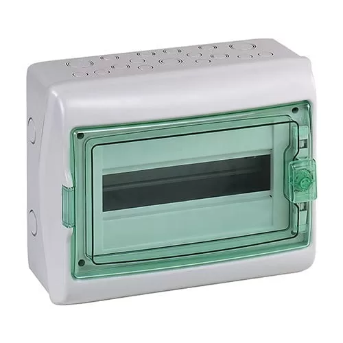 • لوحة شنايدر خارج الحائط بغطاء اخضر شفاف وتربروف