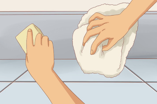 • اشطف الإسفنجة واستخدمها مرة أخرى لمسح المنطقة.