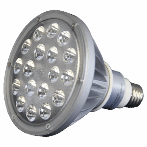 PAR38 عبارة عن مصباح يطلق الكثير من اللومن (السطوع). إنها تأتي مع تركيبات لولبية وغالبًا ما تستخدم في ورش العمل والأمن والإضاءة التجارية.