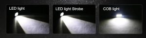 أوضاع إضاءة LED: زر تشغيل / إيقاف تشغيل مفتاح الزناد مع XPE High Light و XPE Strobe و COB High Light.