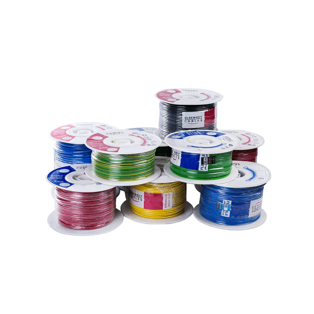 نوفر تشكيلة كاملة تبدأ من 0.5 مم وحتى المقاسات الكبيرة، وجميعها تأتي في لفات 100 متر بألوان مختلفة (أحمر، أسود، أزرق، أخضر، أصفر) لتناسب جميع احتياجات الكنترول والتأسيس.